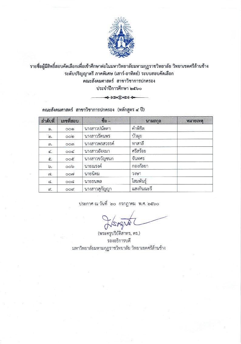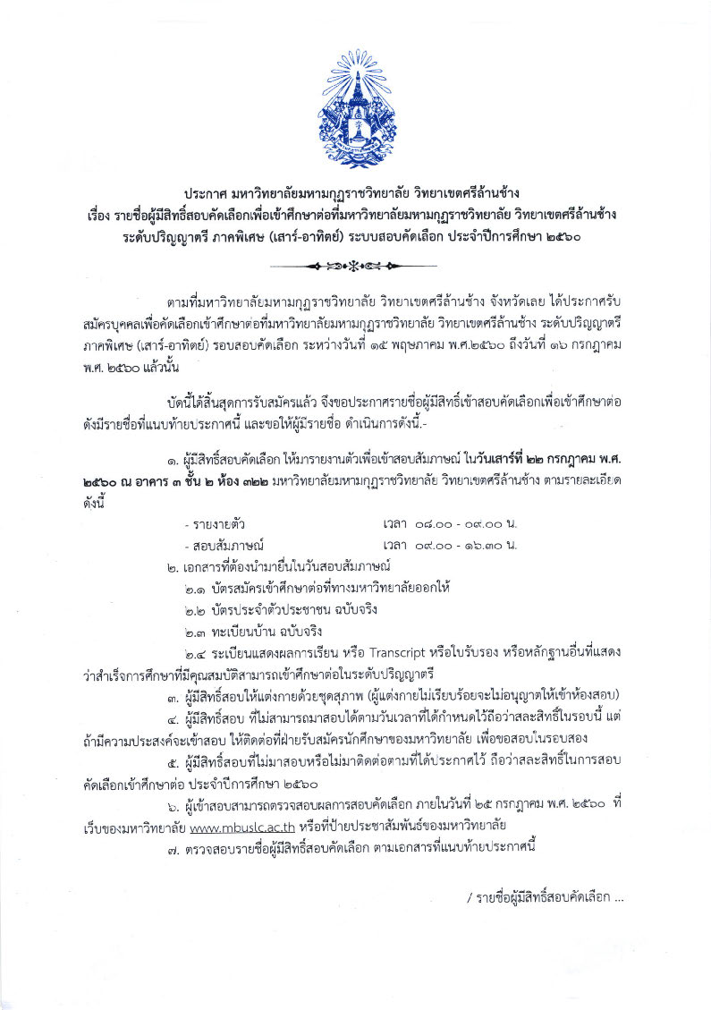 ประกาศ รายชื่อผู้มีสิทธิ์สอบเข้าศึกษาต่อ ภาคพิเศษ(เสาร์-อาทิตย์) รอบสอง ปีการศึกษา 2560