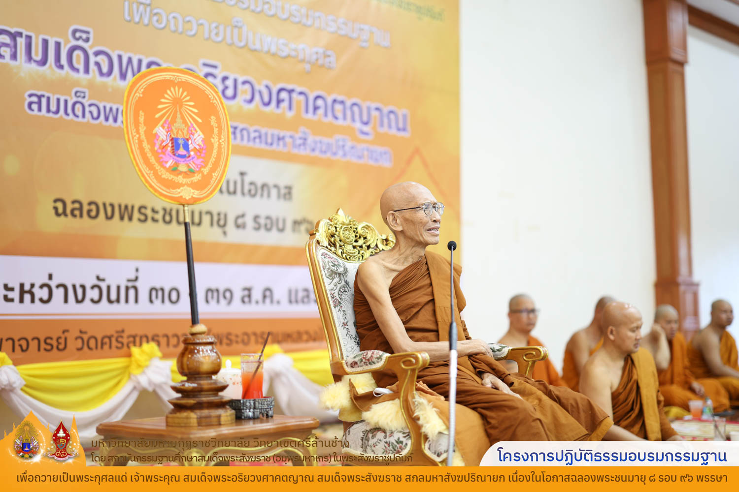 มหาวิทยาลัยมหามกุฏราชวิทยาลัย วิทยาเขตศรีล้านช้าง โดย สถาบันกรรมฐานศึกษาสมเด็จพระสังฆราช (อมฺพรมหาเถร) ในพระสังฆราชูปถัมภ์ จัดปฏิบัติธรรมอบรมกรรมฐานเพื่อถวายเป็นพระกุศลแด่ เจ้าพระคุณ สมเด็จพระอริยวงศาคตญาณ สมเด็จพระสังฆราช สกลมหาสังฆปริณายก เนื่องในโอกาสฉลองพระชนมายุ ๘ รอบ ๙๖ พรรษา (๒๖ มิถุนายน ๒๕๖๖) และวันคล้ายวันสถาปนา ครบ ๒๘ ปี ระหว่างวันที่ ๓๐ สิงหาคม – ๓ กันยายน พ.ศ. ๒๕๖๖ (๕ วัน) ณ ศาลาบูรพาจารย์ ตำบลกุดป่อง อำเภอเมือง จังหวัดเลย