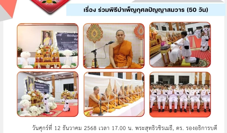 ประมวลภาพกิจกรรม เรื่อง ร่วมเป็นเจ้าภาพพิธีบำเพ็ญกุศลสวดพระอภิธรรมศพ นางสาวสุธารัตน์ โปรณะ นักวิชาการการเงินและบัญชี ชำนาญการ19 ธันวาคม 202523 ธันวาคม 2025