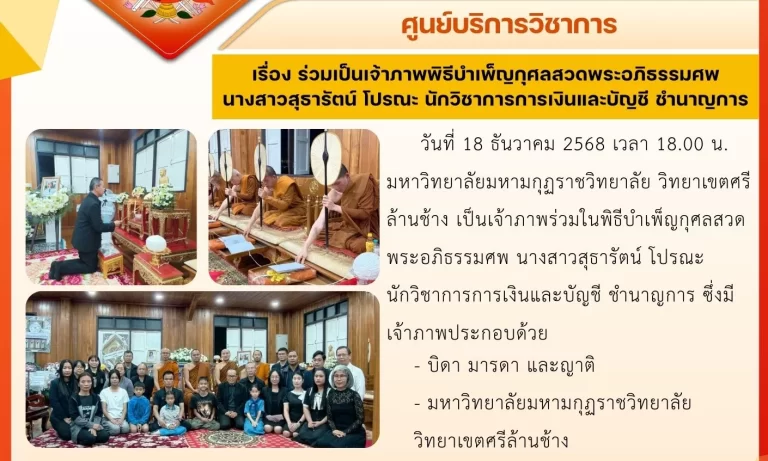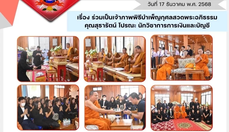 ประมวลภาพกิจกรรม เรื่อง ร่วมเป็นเจ้าภาพพิธีบำเพ็ญกุศลสวดพระอภิธรรมคุณสุธารัตน์ โปรณะ นักวิชาการการเงินและบัญชี18 ธันวาคม 202518 ธันวาคม 2025