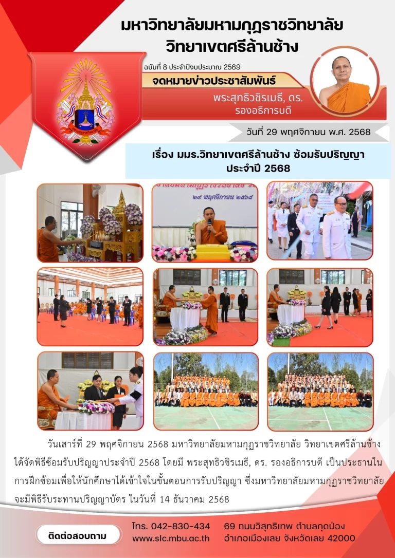 ประมวลภาพกิจกรรม เรื่อง มมร.วิทยาเขตศรีล้านช้าง ซ้อมรับปริญญาประจำปี 256829 พฤศจิกายน 20253 ธันวาคม 2025
