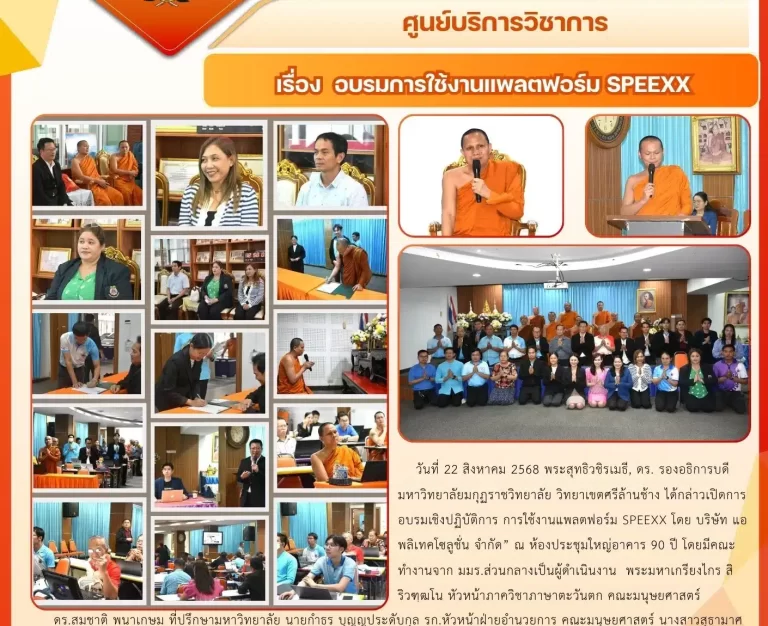 ประมวลภาพกิจกรรม อบรมการใช้งานแพลตฟอร์ม SPEEXX (สำหรับบุคลากรอาจารย์ และเจ้าหน้าที่)22 สิงหาคม 202524 กันยายน 2025