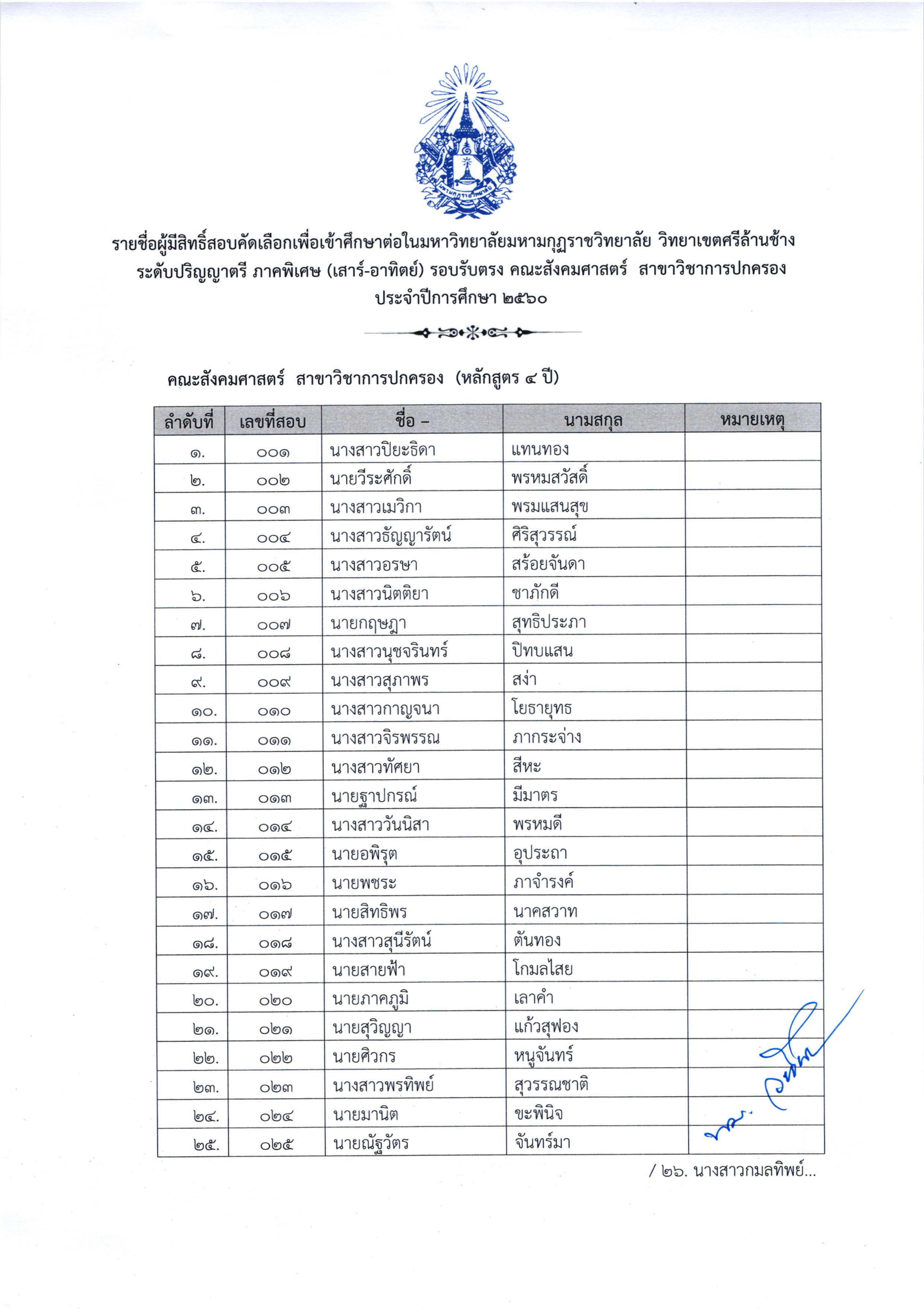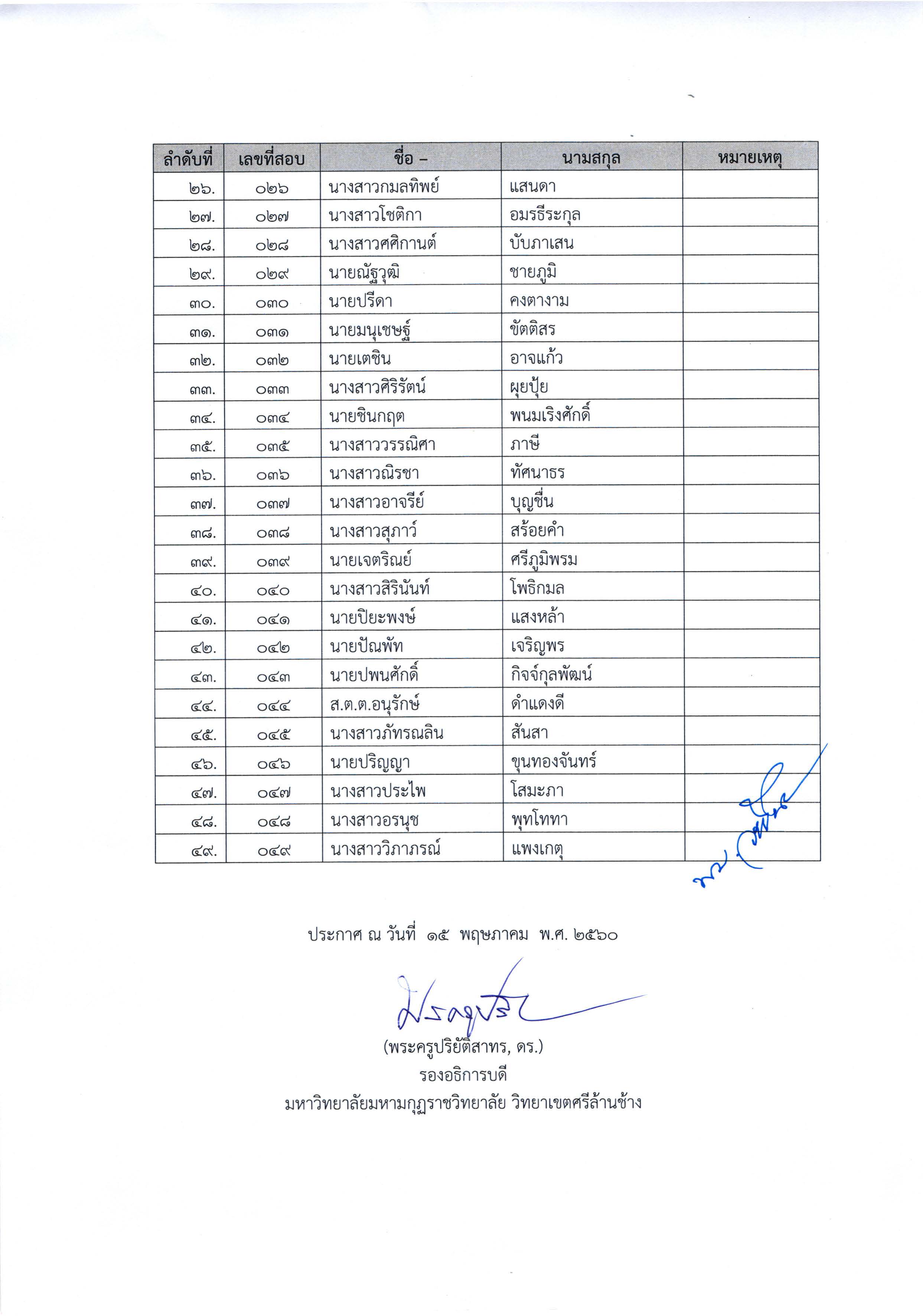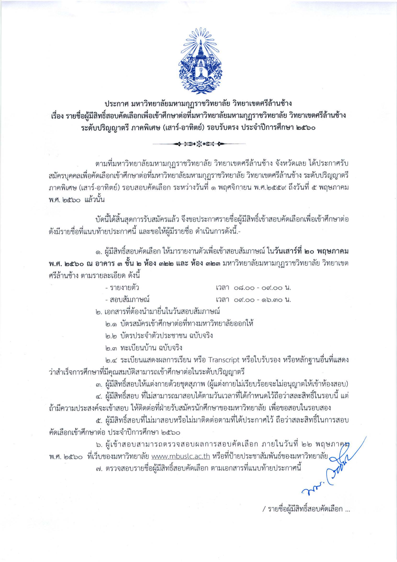 ประกาศ รายชื่อผู้มีสิทธิ์สอบคัดเลือกเพื่อเข้าศึกษาต่อ ระดับปริญญาตรี (เสาร์-อาทิตย์) ปีการศึกษา 2560