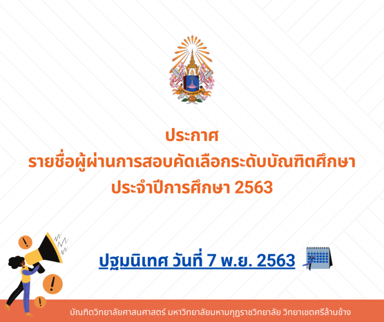 ข่าวประชาสัมพันธ์ ประกาศ รายชื่อผู้ผ่านการสอบคัดเลือกระดับบัณฑิตศึกษา ประจำปีการศึกษา 256324 ตุลาคม 202025 ตุลาคม 2020