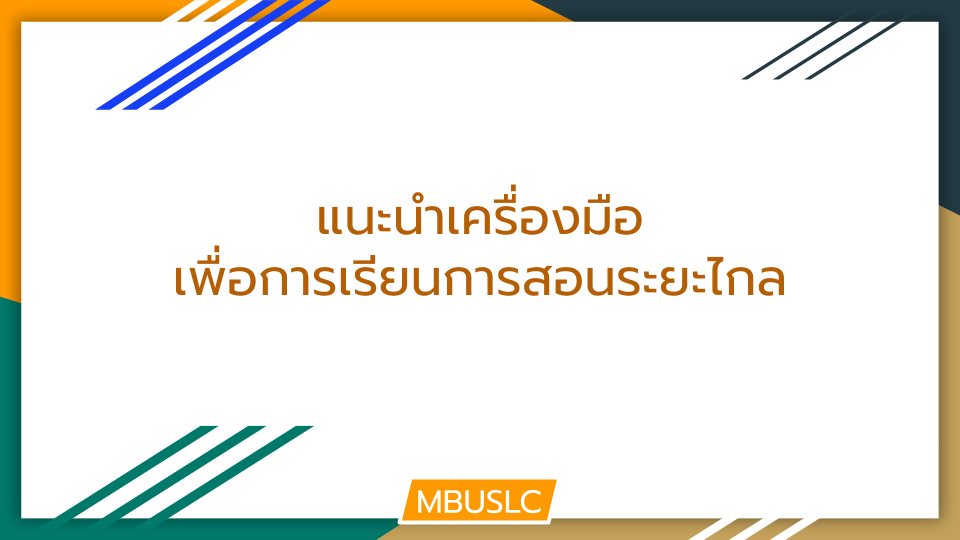 - ผู้สอนสามารถถ่ายทอดสดการสอนผ่านระบบวิดีโอคอนเฟอเรนซ์ (video conference) ด้วย Google Meet (แนะนำ), Hangouts, Webex Meet หรือ Microsoft Teams