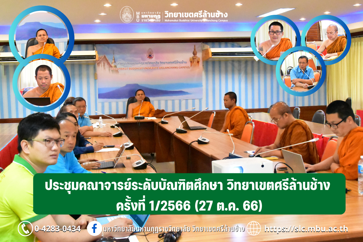 การประชุมคณาจารย์ระดับบัณฑิตศึกษา ใน 5 หลักสูตร ระดับบัณฑิตศึกษา ครั้งที่ 1/2566 ในวันศุกร์ที่ 27 ตุลาคม 2566 เวลา 09.00 น. ณ ห้องประชุมกว้าง รอบคอบ พระมหาวิเชียร ธมฺมวชิโร,ดร. รองอธิการบดี ประธานที่ประชุม พร้อมด้วยคณาจารย์บัณฑิตศึกษา 5 หลักสูตร เข้าร่วมประชุมปรึกษาหารือเกี่ยวกับการดำเนินการบริหารหลักสูตร ภาคการศึกษาที่ 2/2566 ณ ห้องประชุมกว้าง รอบคอบ วิทยาเขตศรีล้านช้าง