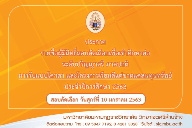 ข่าวประชาสัมพันธ์ ประกาศ รายชื่อผู้ผ่านการสอบคัดเลือกเพื่อเข้าศึกษาต่อระดับปริญญาตรี การรับแบบโควตา และโครงการเรียนดีแต่ขาดแคลนทุนทรัพย์ ประจำปีการศึกษา 256314 มกราคม 202014 มกราคม 2020