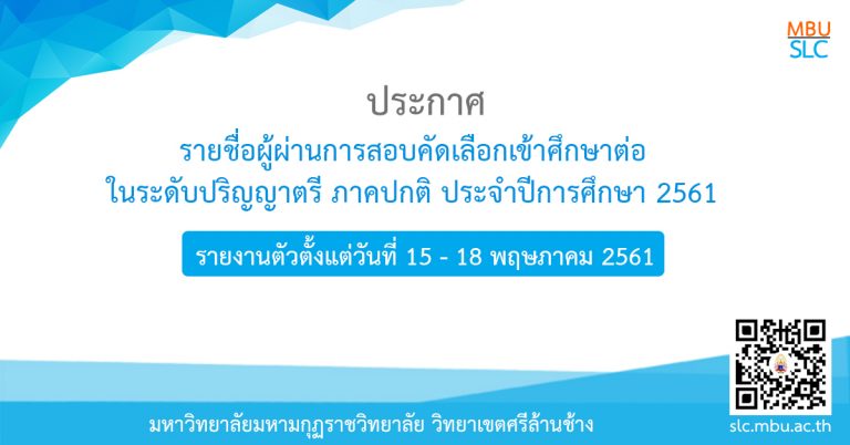 ข่าวประชาสัมพันธ์ ประกาศรายชื่อผู้ผ่านการสอบคัดเลือกเข้าศึกษาต่อในระดับปริญญาตรี ภาคปกติ ประจำปีการศึกษา 256111 พฤษภาคม 201811 พฤษภาคม 2018