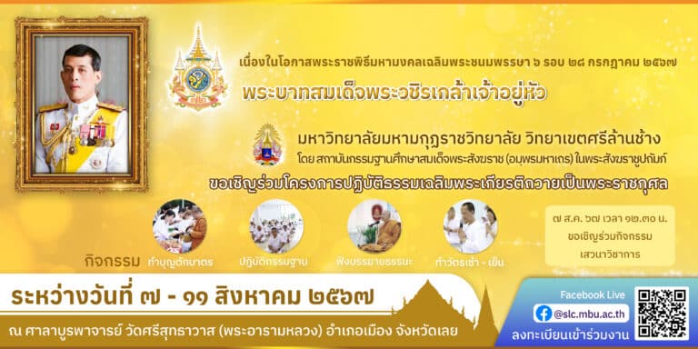 ข่าวประชาสัมพันธ์ กำหนดการ โครงการปฏิบัติธรรมเฉลิมพระเกียรติถวายเป็นพระราชกุศล5 สิงหาคม 20245 สิงหาคม 2024