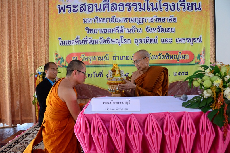 วันที่ ๑๓ -๑๕ พฤษภาคม ๒๕๕๘ ที่ผ่านมา มหาวิทยาลัยมหามกุฏราชวิทยาลัย วิทยาเขตศรีล้านช้าง โดยการนำของพระครูกิตติวรคุณ หัวหน้าศูนย์อบรมจังหวัดพิษณุโลก ได้รับมอบหมายให้ดำเนินการตามโครงการพระสอนศิลธรรมในโรงเรียน ประจำปีงบประมาณ ๒๕๕๘ ณ ศูนย์อบรมวัดจุฬามณี จังหวัดพิษณุโลก เพื่อสร้างความรู้ความเข้าใจและทักษะในการเรียนรู้ให้พระสงฆ์ที่ไปจัดการเรียนรู้ให้กับนักเรียนในระดับประถมศึกษา มัธยมศึกษา และระดับอาชีวศึกษา