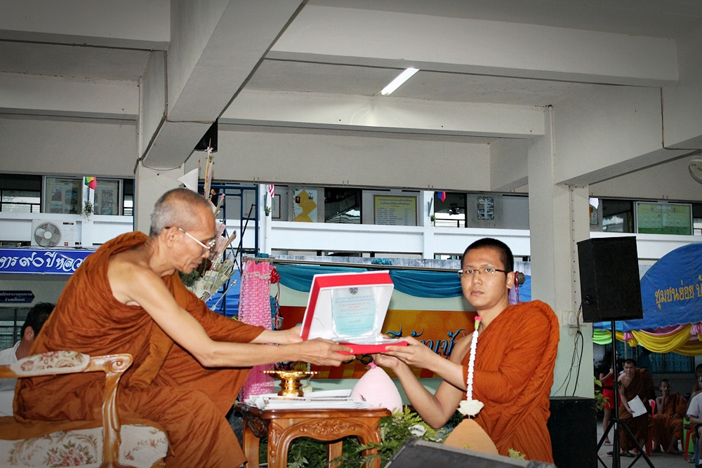 วันที่ 12 สิงหาคม 2556 เวลา 17.39 น. พระครูกิตติสารสุมณฑ์ รก.รองอธิการบดีวิทยาเขตศรีล้านช้าง ได้ให้ความเมตตาเป็นประธานมอบโล่รางวัลพร้อมกับเกียรติบัตรให้กับผู้ชนะเลิศการแข่งขันประเภทต่างๆ ให้โอวาทและกล่าวปิดกิจกรรม