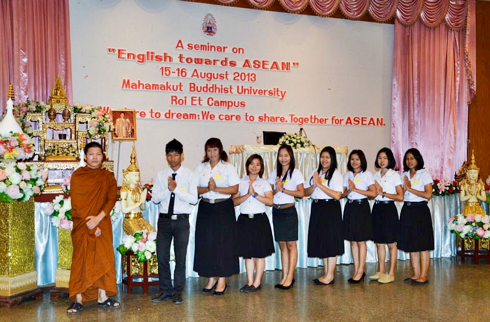 เมื่อวันที่ 15 สิงหาคม 2556 ดร.จักรกฤษณ์ โพดาพล พร้อมด้วยอาจารย์กิตติพัฒน์ ทาวงศ์ษา อาจารย์ประจำหลักสูตรการสอนภาษาอังกฤษ ได้นำนักศึกษาเข้าร่วมโครงการพัฒนาทักษะภาษาอังกฤษเพื่อเตรียมความพร้อมสู่อาเซียน A Seminar on “English towards ASEAN” ซึ่งจัดโดย มมร.วิทยาเขตร้อยเอ็ด ณ ห้องประดับเพชร โรงแรมเพชรรัตน์ การ์เด้น อำเภอเมือง จังหวัดร้อยเอ็ด ในระหว่างวันที่ 15-16 สิงหาคม 2556