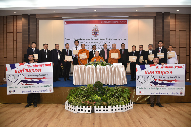 เมื่อระหว่างวันที่ 25-28 พฤศจิกายน พ.ศ.2560 บุคลากรมหาวิทยาลัยมหามกุฏราชวิทยาลัย วิทยาเขตศรีล้านช้าง ได้เข้าร่วมอบรมในโครงการ “โครงการประชุมสัมมนาการเพิ่มประสิทธิภาพปฏิบัติงานของบุคลากร มหาวิทยาลัยมหามกุฏราชวิทยาลัย” ณ โรงแรม ดี วารี จอมเทียนบีช พัทยา จ.ชลบุรี โดยมีพระเทพบัณฑิต อธิการบดีเป็นประธานในพิธีเปิดโครงการ ซึ่งโครงการนี้มีวัตถุประสงค์เพื่อให้ผู้บริหาร ตลอดจนเจ้าหน้าที่ผู้เข้าร่วมประชุมสัมมนาได้รับทราบนโยบาย หลักเกณฑ์ และแนวทางการใช้จ่ายงบประมาณตามนโยบายรัฐบาลนโยบายมหาวิทยาลัยได้อย่างถูกต้องและนำไปปฏิบัติให้เป็นไปตามแนวทางเดียวกันอย่างมีประสิทธิภาพและประสิทธิผล