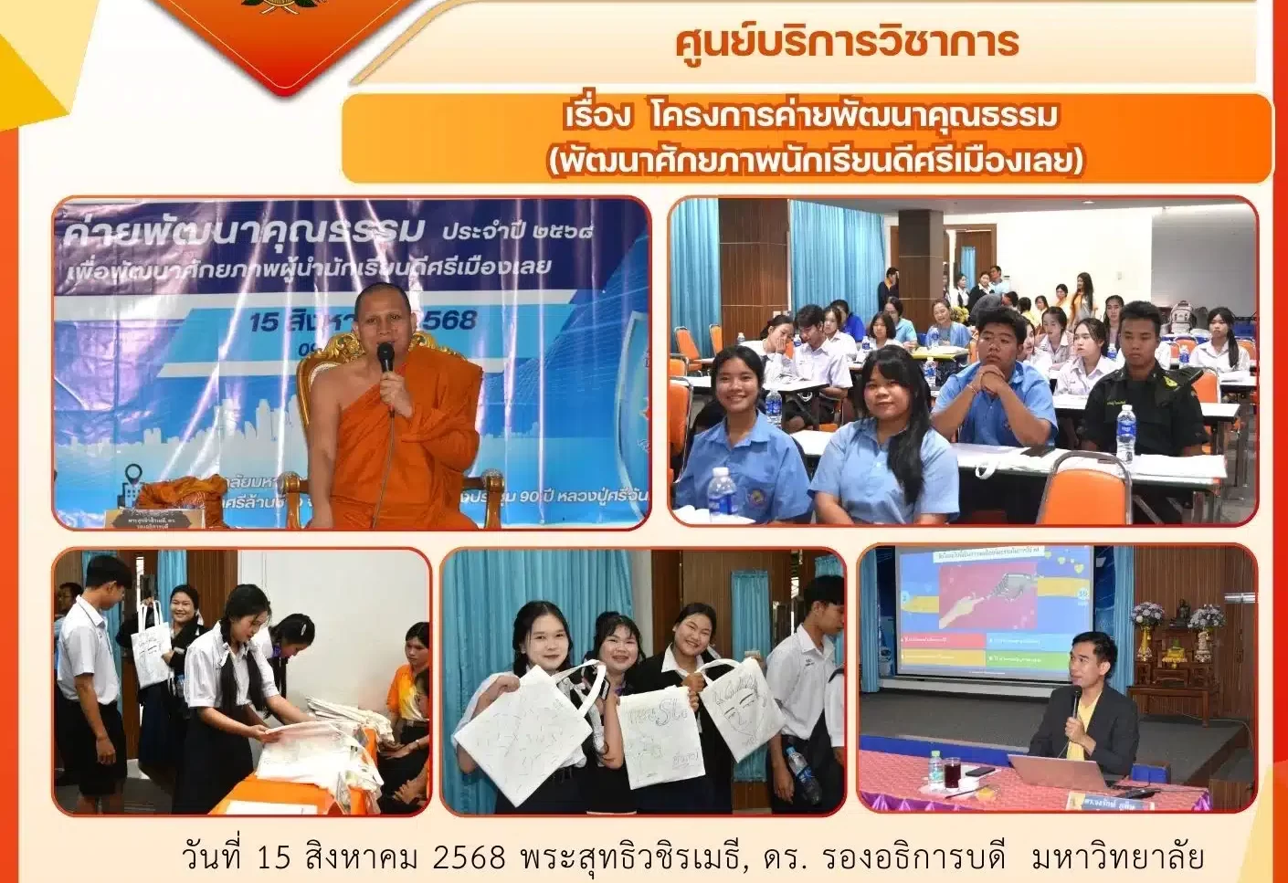 วันที่ 15 สิงหาคม 2568 พระสุทธิวชิรเมธี, ดร. รองอธิการบดี มหาวิทยาลัยมกุฏราชวิทยาลัย วิทยาเขตศรีล้านช้าง ได้กล่าวเปิดโครงการและให้โอวาท ผู้ที่เข้าร่วมโครงการค่ายพัฒนาคุณธรรม (พัฒนาศักยภาพนักเรียนดีศรีเมืองเลย) โดยมีวัตถุประสงค์ เพื่อให้เยาวชน นักเรียน นักศึกษา บุคคลทั่วไปทุกวัยได้รู้จักการใช้ชีวิตร่วมกับผู้อื่นและการทำงานร่วมกับผู้อื่นได้อย่างถูกต้องตามพุทธวิถี รู้จักวิธีการนำหลักพุทธธรรมไปประยุกต์ใช้ในการดำเนินชีวิตประจำวัน