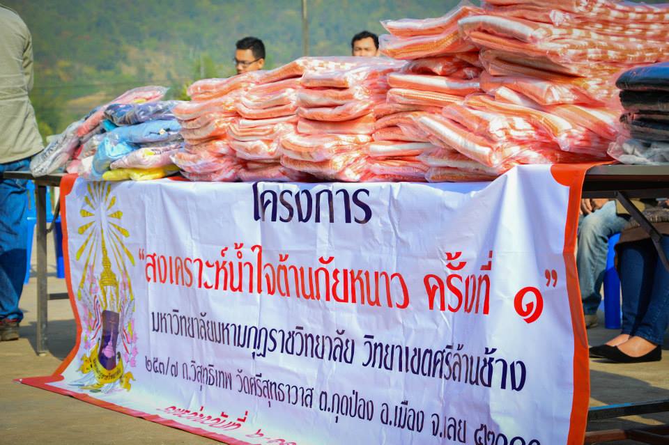 วันที่ 6 ม.ค. 2557 ช่วงเช้า ผู้บริหาร คณาจารย์ เจ้าหน้าที่ และนักศึกษา ได้ร่วมกันนำสิ่งของ เครื่องกันหนาว มอบให้กับคณะครู นักเรียน และชาวบ้าน ในเขตพื้นที่อำเภอด่านซ้าย จังหวัดเลย ตามโครงการ “สงเคราะห์น้ำใจต้านภัยหนาว ครั้งที่ 1” ซึ่งจุดแรกที่โรงเรียนบ้านห้วยตาด โดยมี พระครูกิตติสารสุมณฑ์ รองอธิการบดีวิทยาเขตศรีล้านช้าง เป็นประธานมอบสิ่งของ พระมหาวิเชียร ธมฺมวชิโร,ดร. รก.ผู้อำนวยการวิทยาลัยศาสนศาสตร์ คณาจารย์ เจ้าหน้าที่ และตัวแทนนักศึกษาร่วมมอบสิ่งของเครื่องกันหนาว