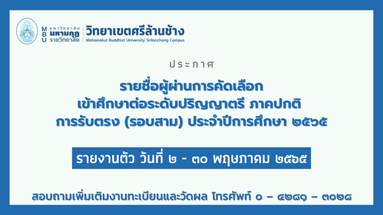 ข่าวประชาสัมพันธ์ ประกาศ รายชื่อผู้ผ่านการสอบคัดเลือกเข้าศึกษาต่อระดับปริญญาตรี ภาคปกติ การรับตรง (รอบสาม) ประจำปีการศึกษา 25652 พฤษภาคม 20222 พฤษภาคม 2022