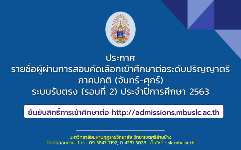 ข่าวประชาสัมพันธ์ ประกาศ รายชื่อผู้ผ่านการสอบคัดเลือกเพื่อเข้าศึกษาต่อระดับปริญญาตรี ภาคปกติ ระบบการรับตรง (รอบสอง) ประจำปีการศึกษา 256315 พฤษภาคม 202015 พฤษภาคม 2020